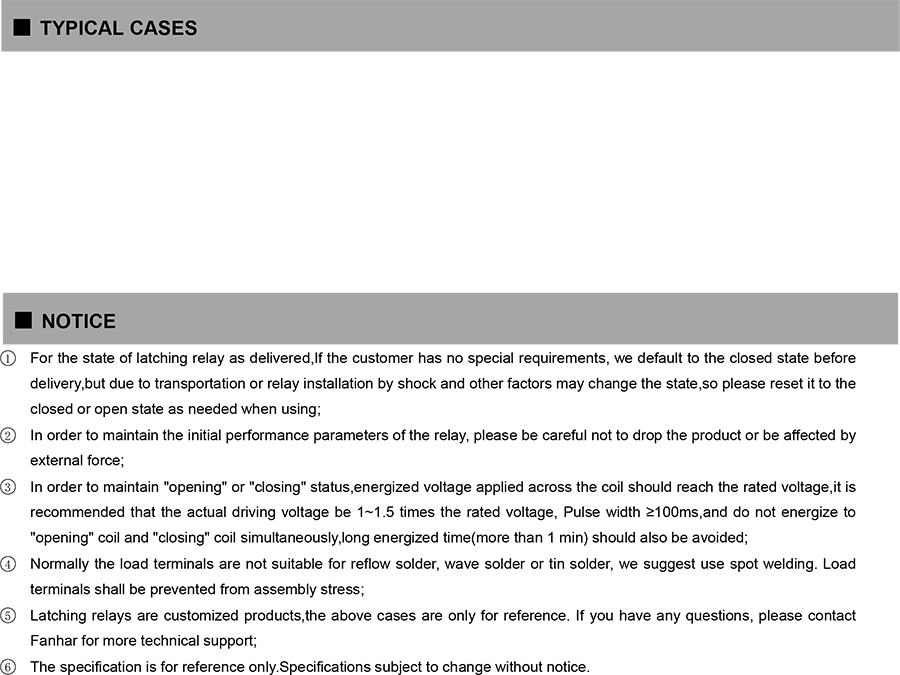 ● Surge voltage(1.2/50μs):between contact and coil 12KV