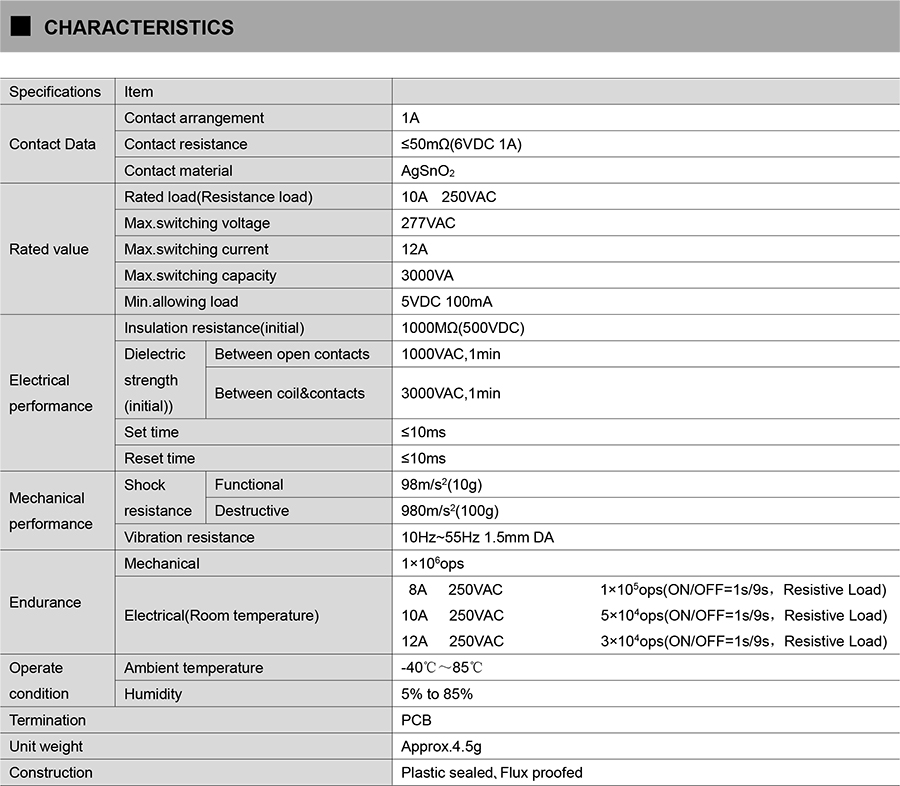 ● 12A switching capability