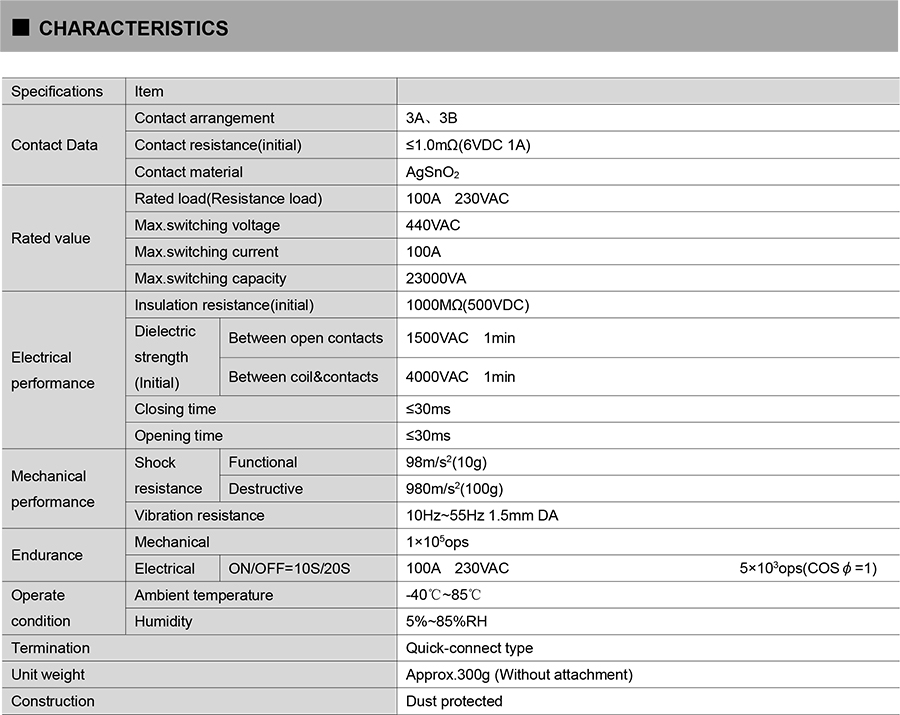 ● 100A switching capability