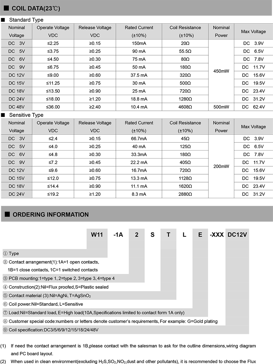 ● Provide high sensitivity type of products, coil power consumption is 200mW