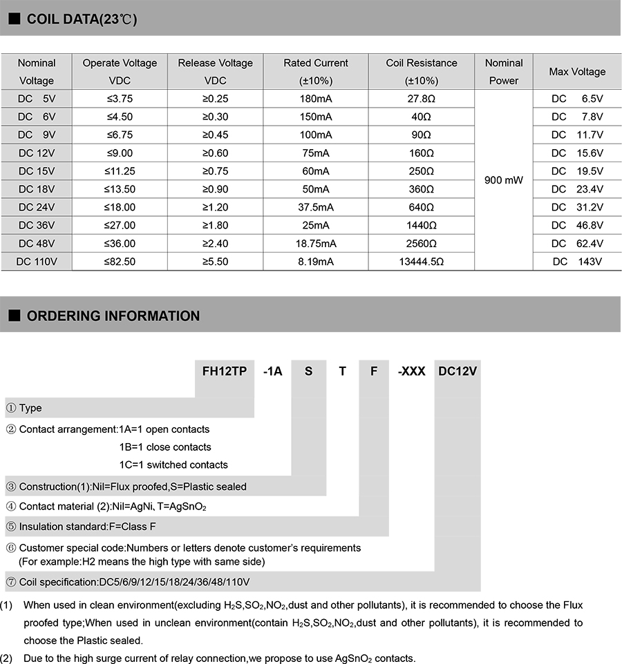 ●Breakdown voltage (between coil and contacts): 2.5KV
