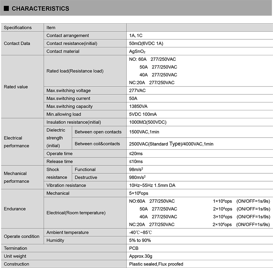 ●50A contact switching capability