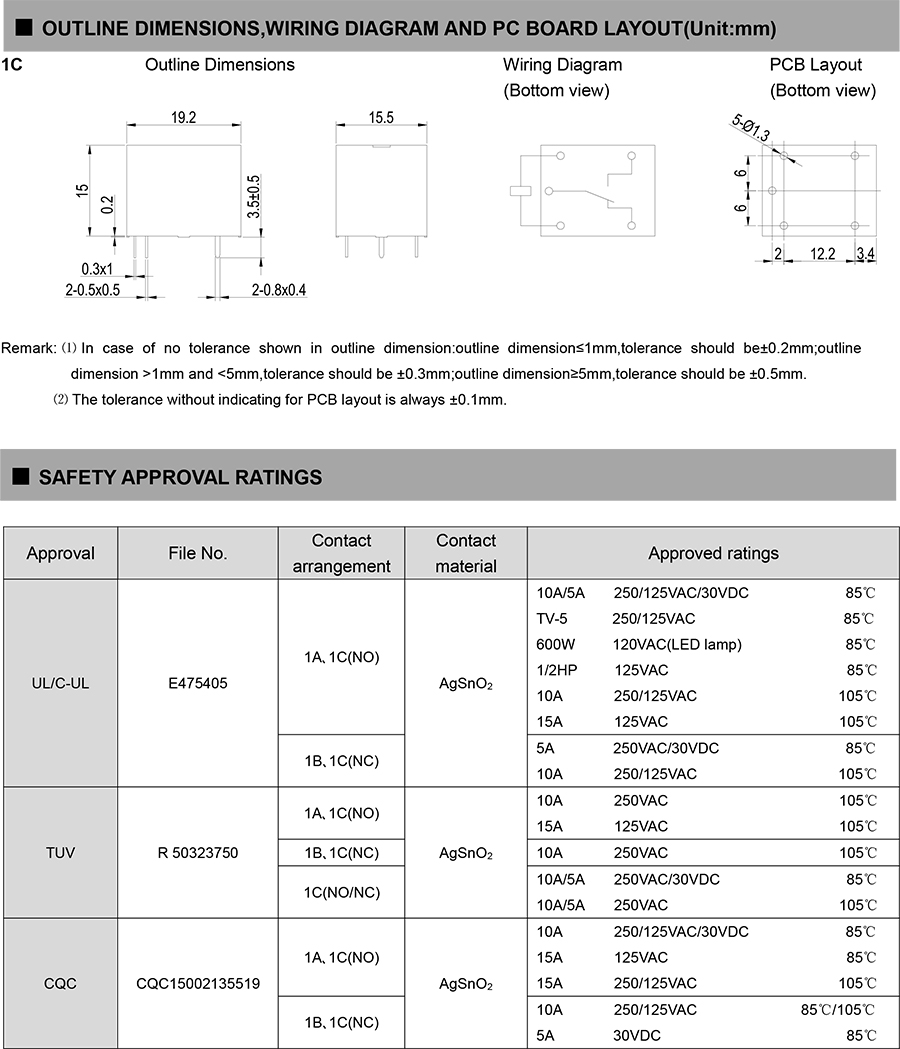 ● Outline Dimensions:(19.2×15.5×15.0)mm