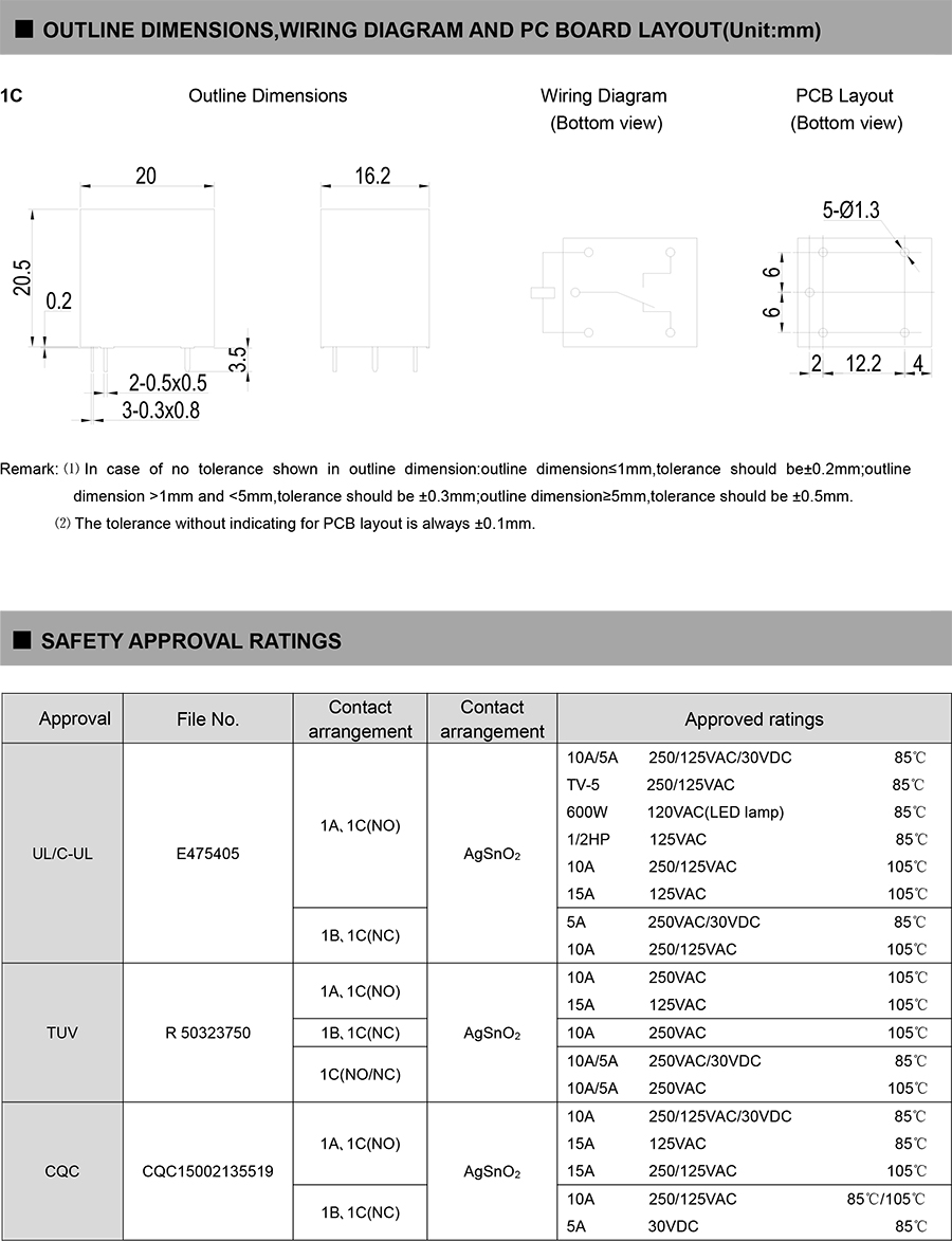 ●Outline Dimensions:(20.0×16.2×20.5)mm