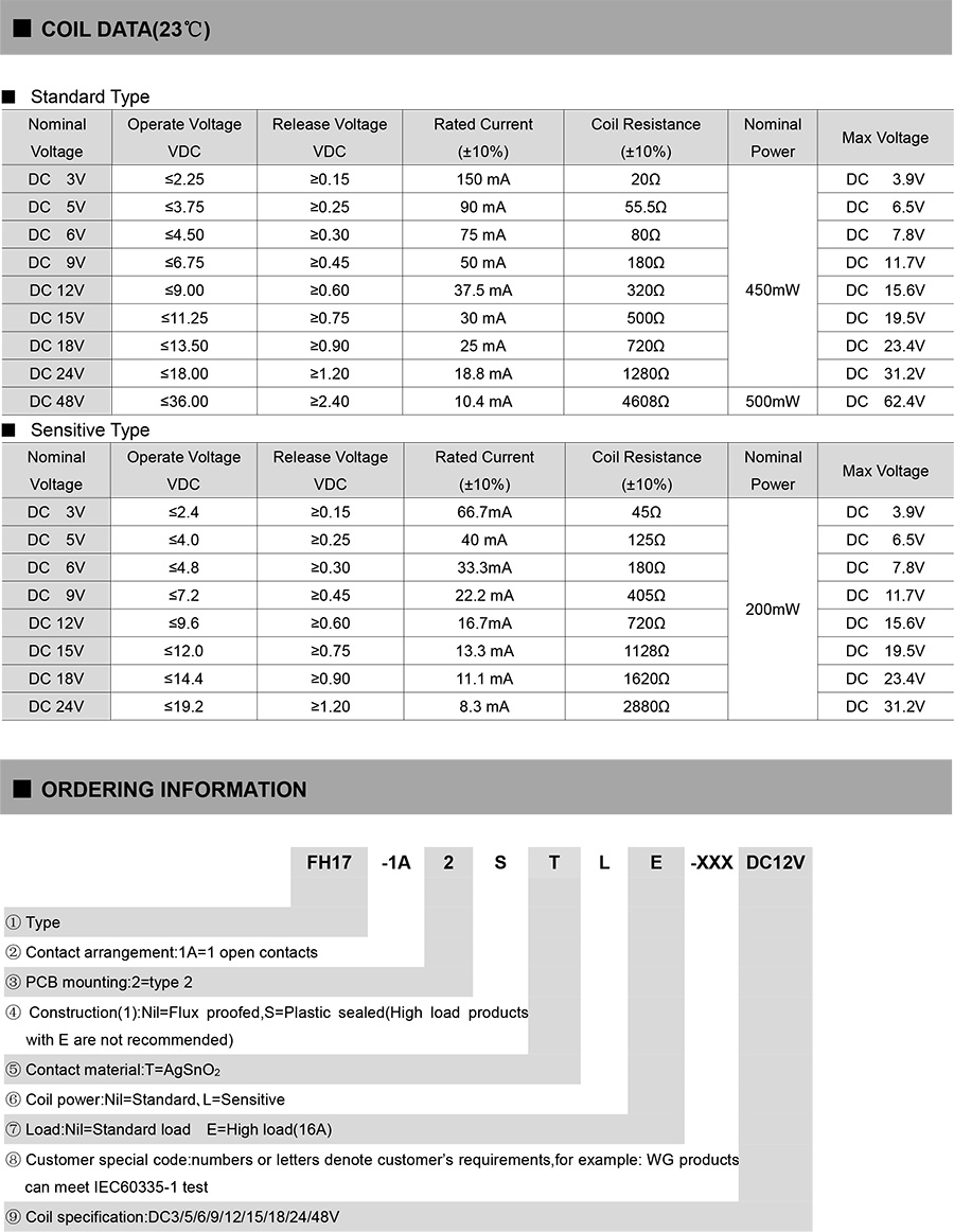 ● Breakdown voltage (between coil and contacts): 4KV