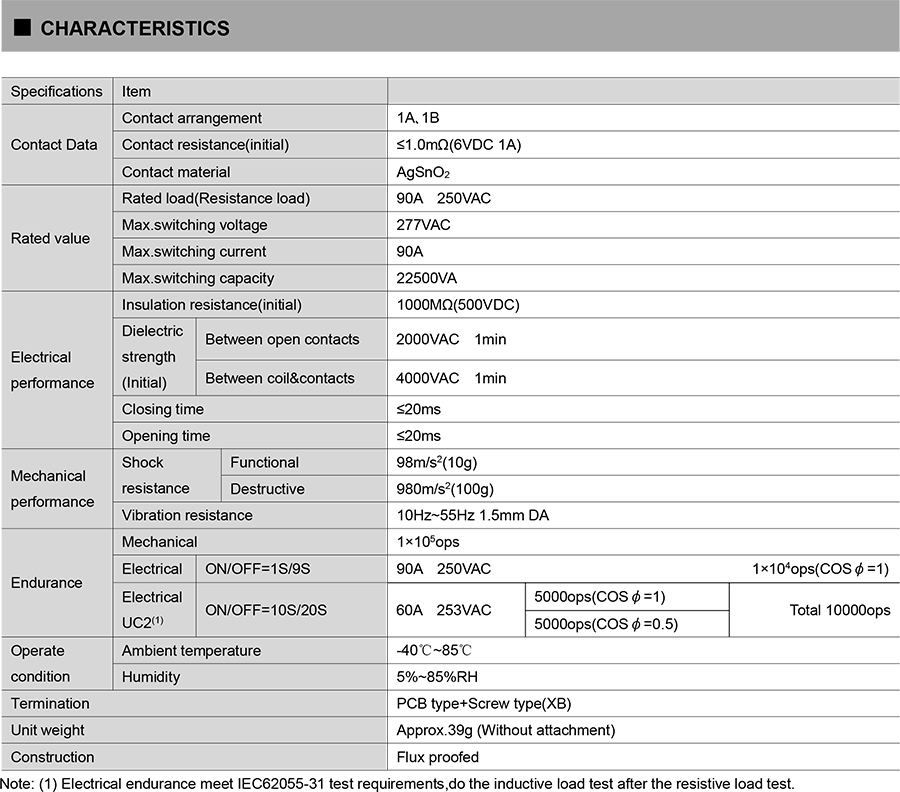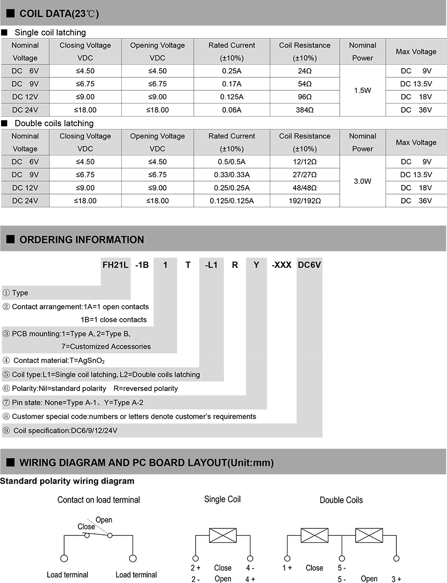● Breakdown voltage (between contact and coil):4KV