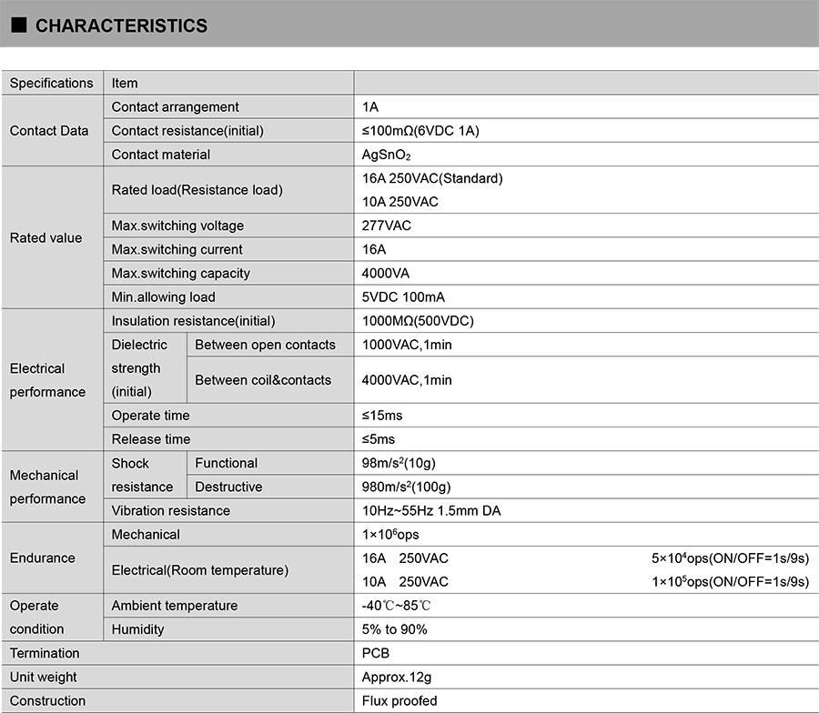 ● Breakdown voltage (between contact and coil):4KV