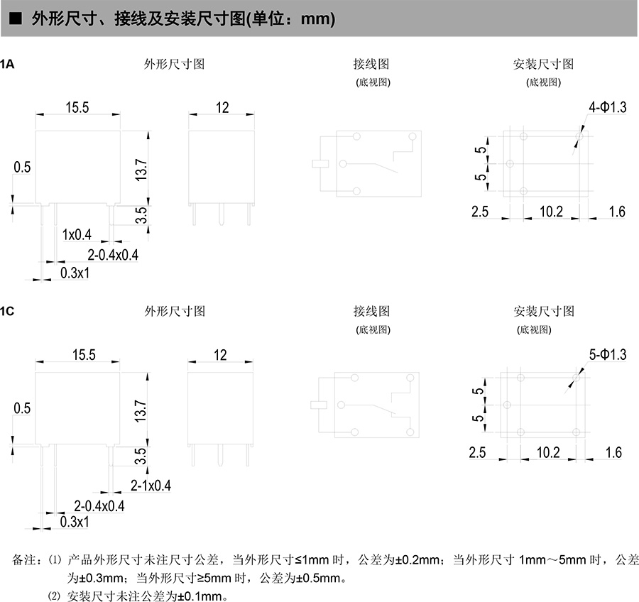 ● 外形尺寸:(15.5×12.0×13.7)mm