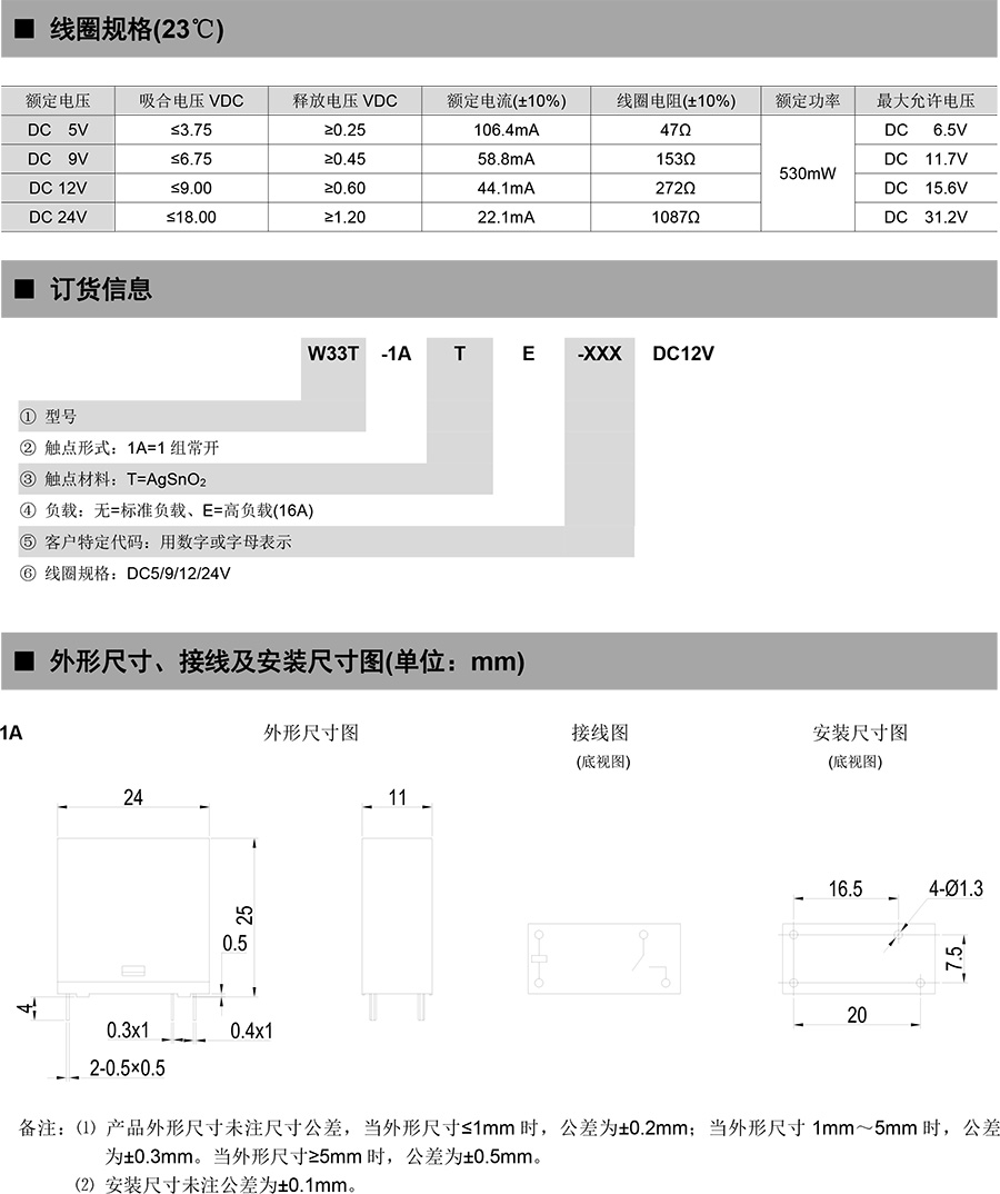 ● 外形尺寸:(24.0×11.0×25.0)mm