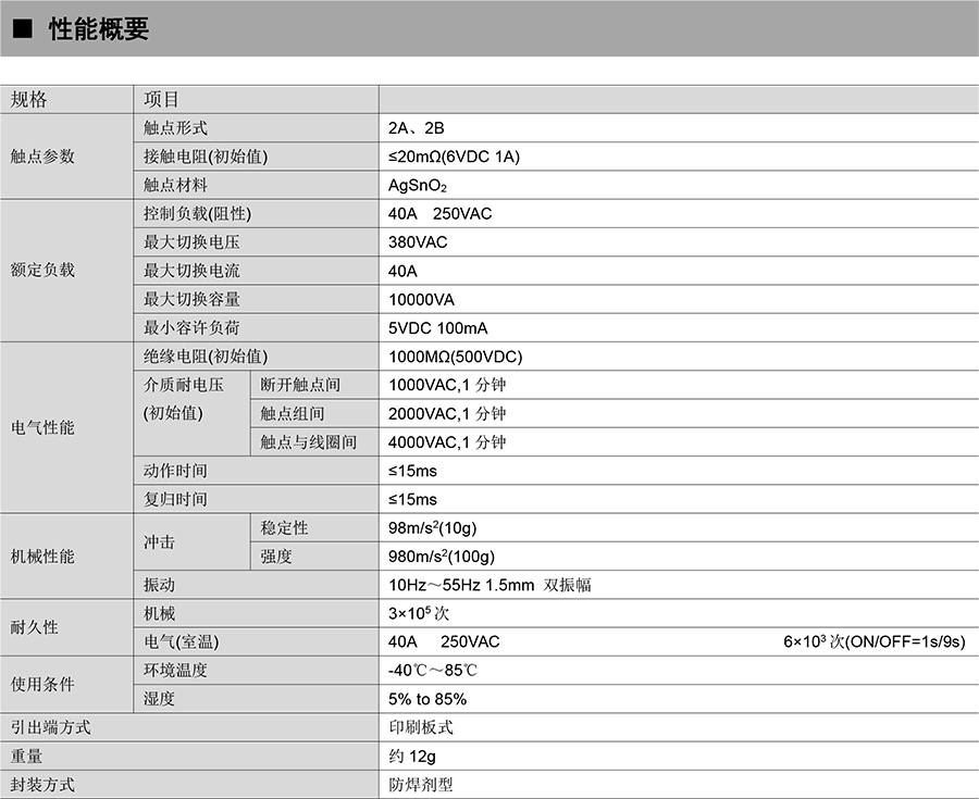 ●2 組40A 觸點切換能力