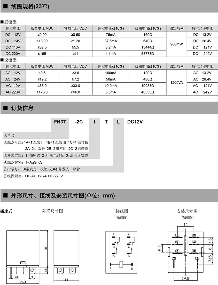 ●具有一組、二組、三組常開、轉(zhuǎn)換觸點形式