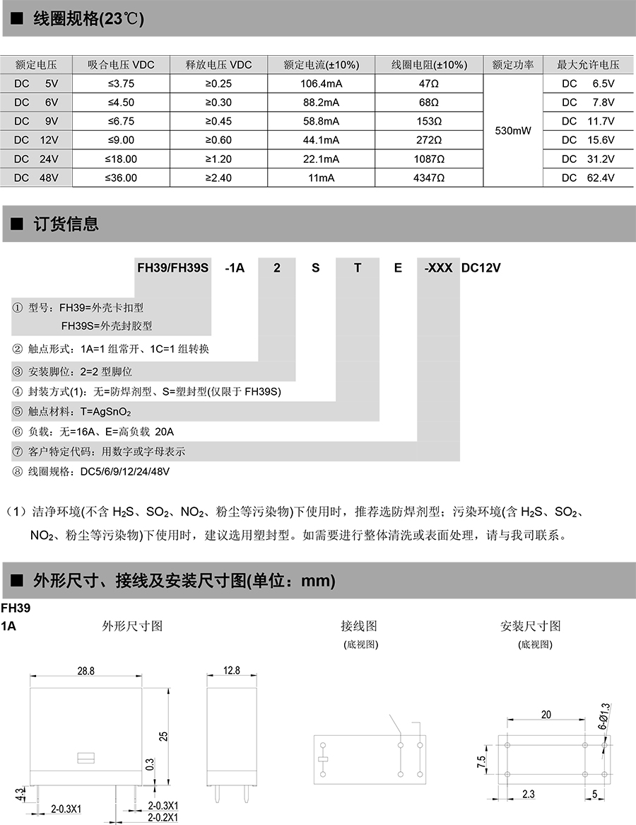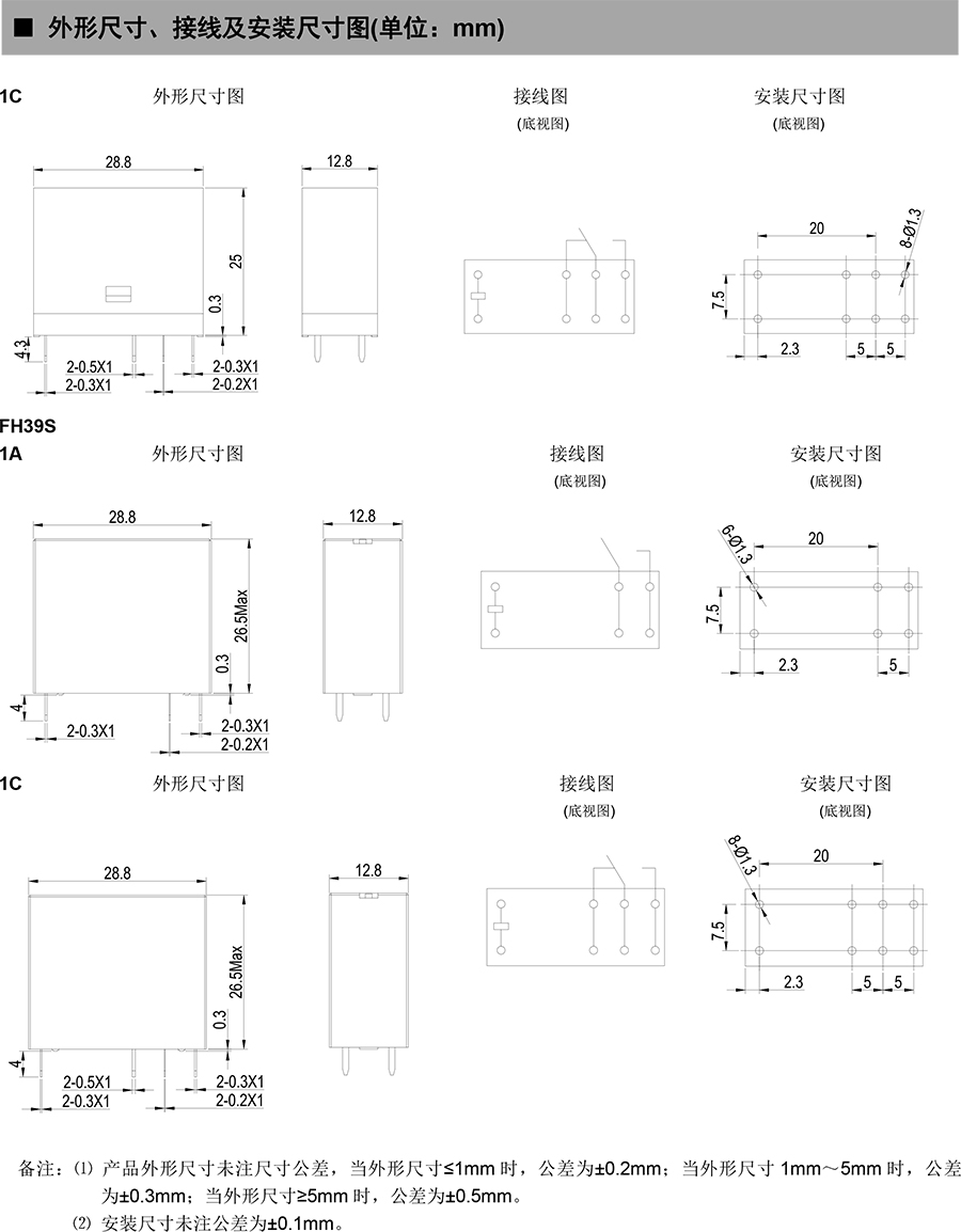 ● 外形尺寸:FH39:(28.8×12.8×25.0)mm