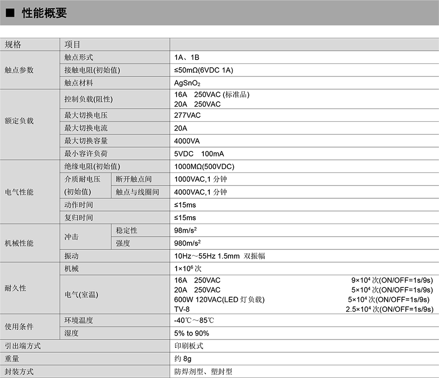 ●16A/20A 觸點(diǎn)切換能力