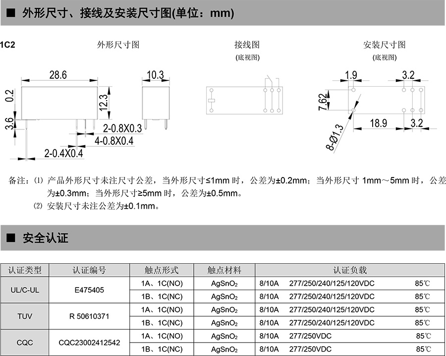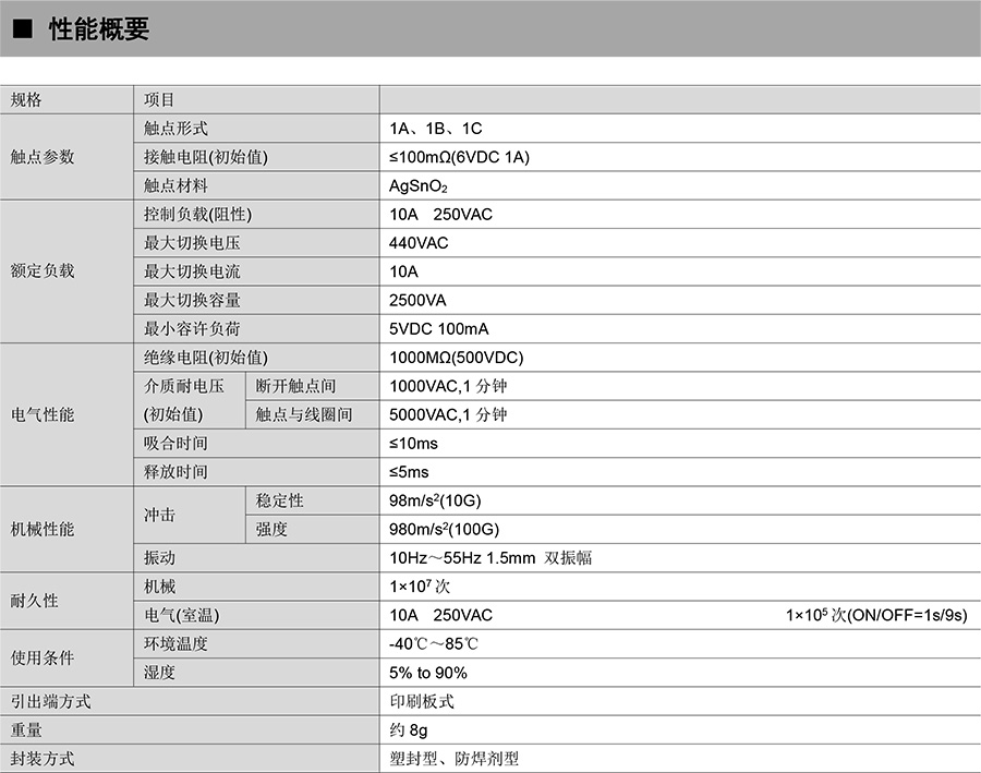 ● 線圈與觸點(diǎn)間介質(zhì)耐壓4kV爬電距離大于8mm