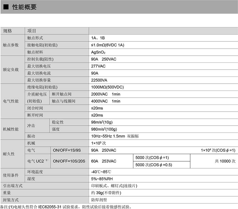 ● 90A 觸點切換能力