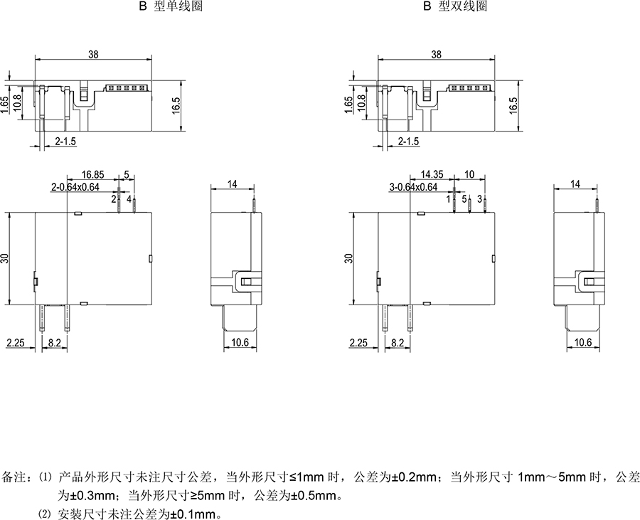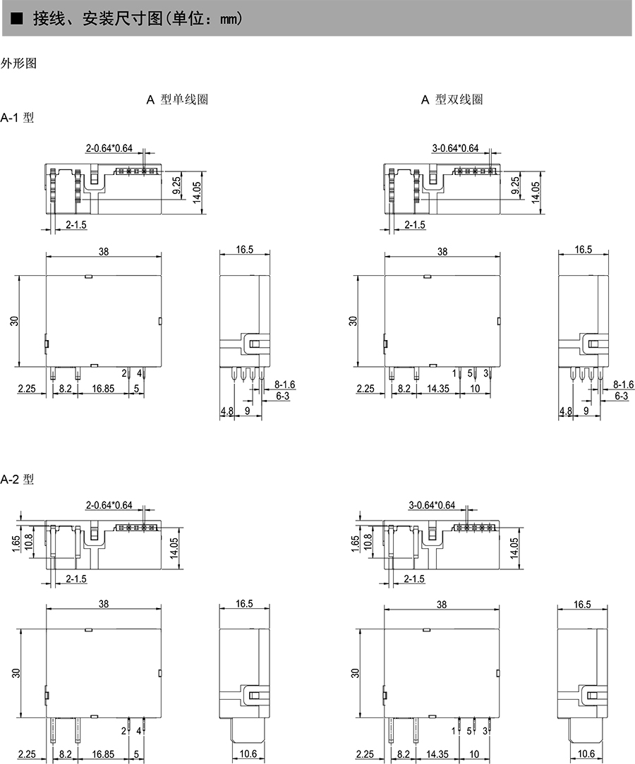 ● 外形尺寸:(38×30.0×16.5)mm