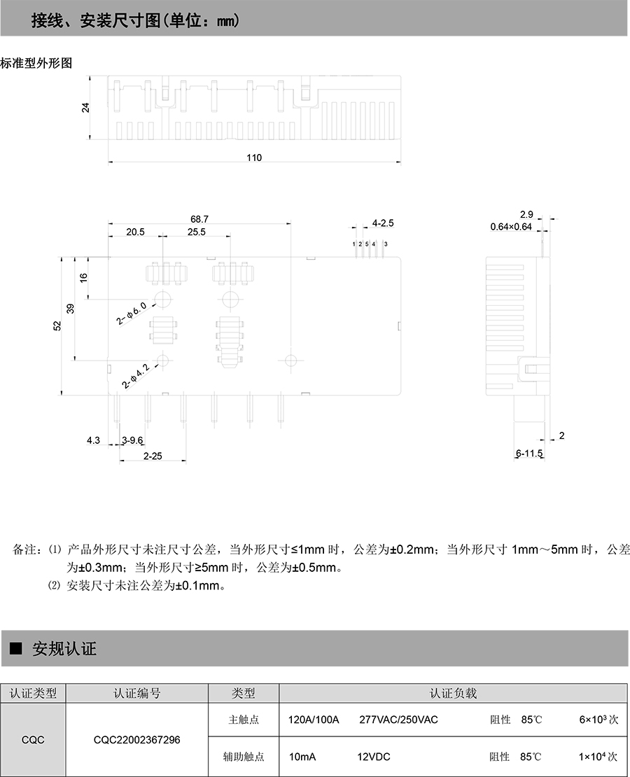 ● 120A 觸點切換能力