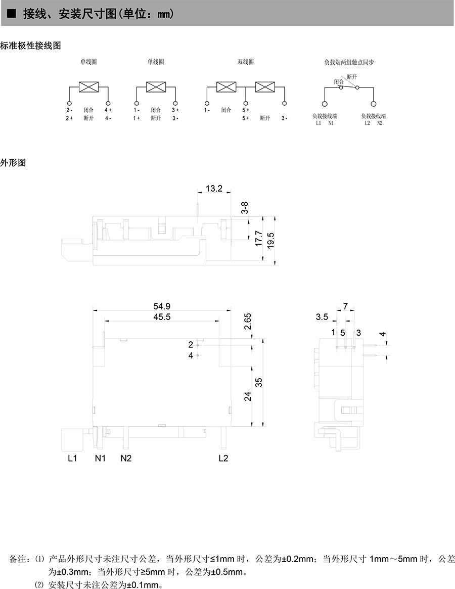● 外形尺寸:(54.9×35×17.7)mm
