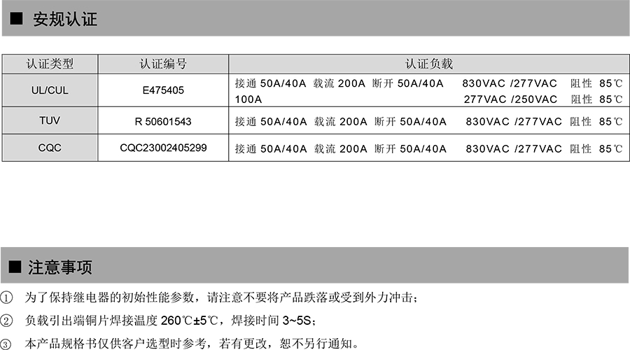 ● 40A 觸點切換能力,200A 載流能力