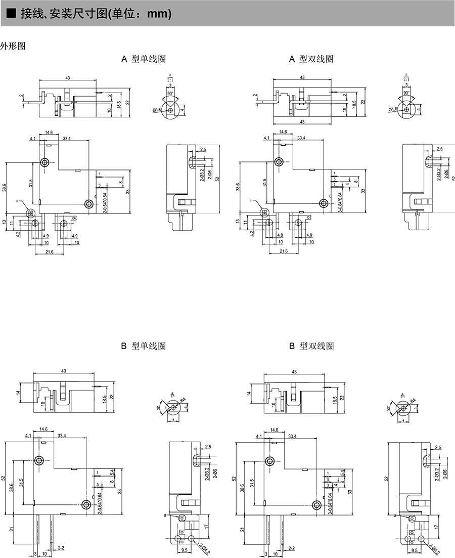 ● 外形尺寸:(52.0×43.0×22.0)mm