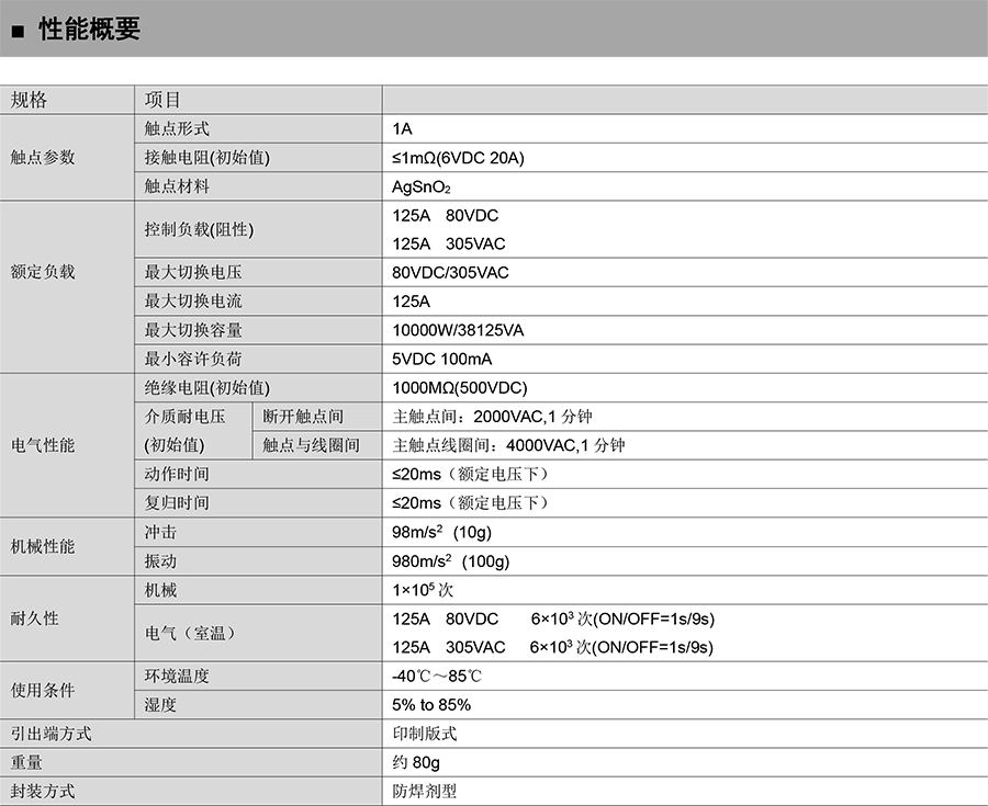 ●125A 觸點切換能力