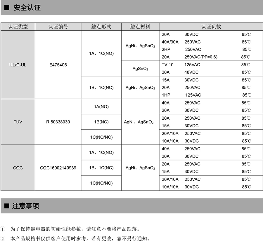 ●40A 觸點切換能力