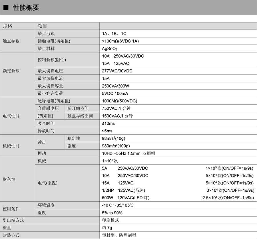 ● 15A觸點(diǎn)切換能力