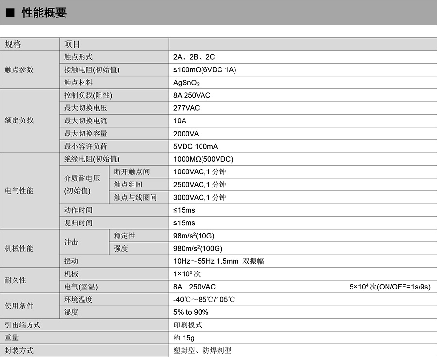 ● 10A 觸點切換能力