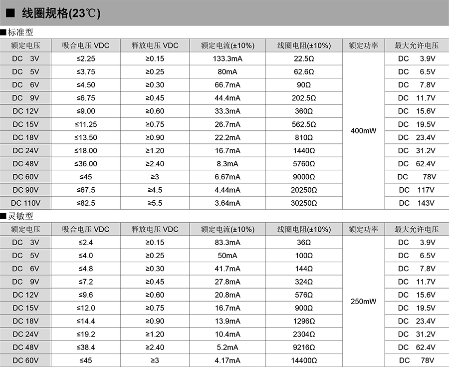 ● 可提供高靈敏型的產(chǎn)品,線圈功耗 250mW