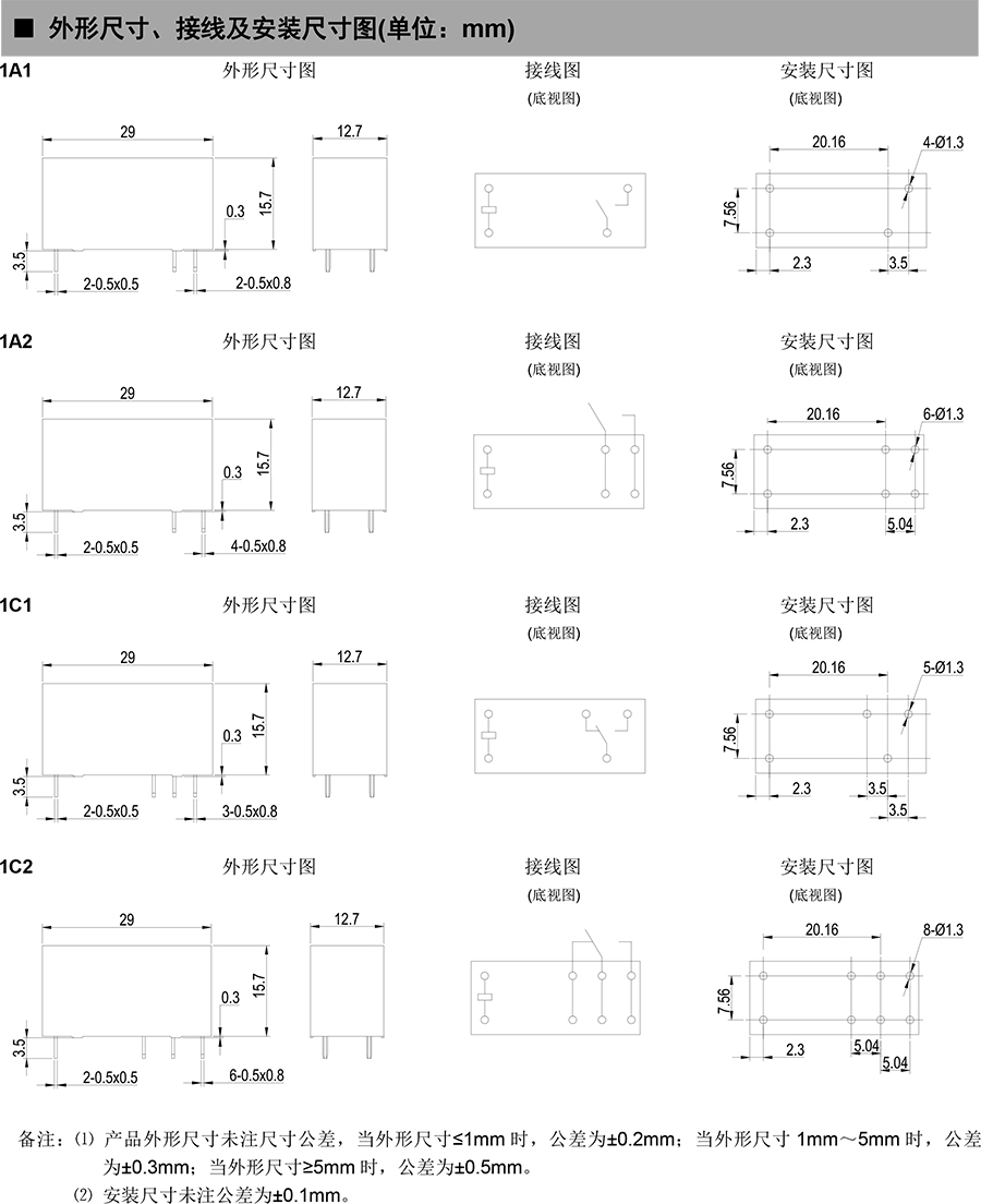 ● 外形尺寸:(29.0×12.7×15.7)mm