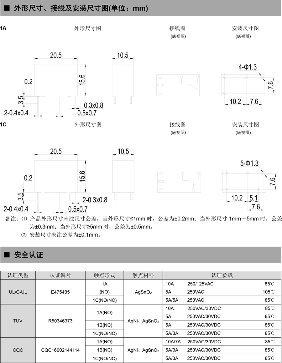● 外形尺寸:(20.5×10.5×15.6)mm